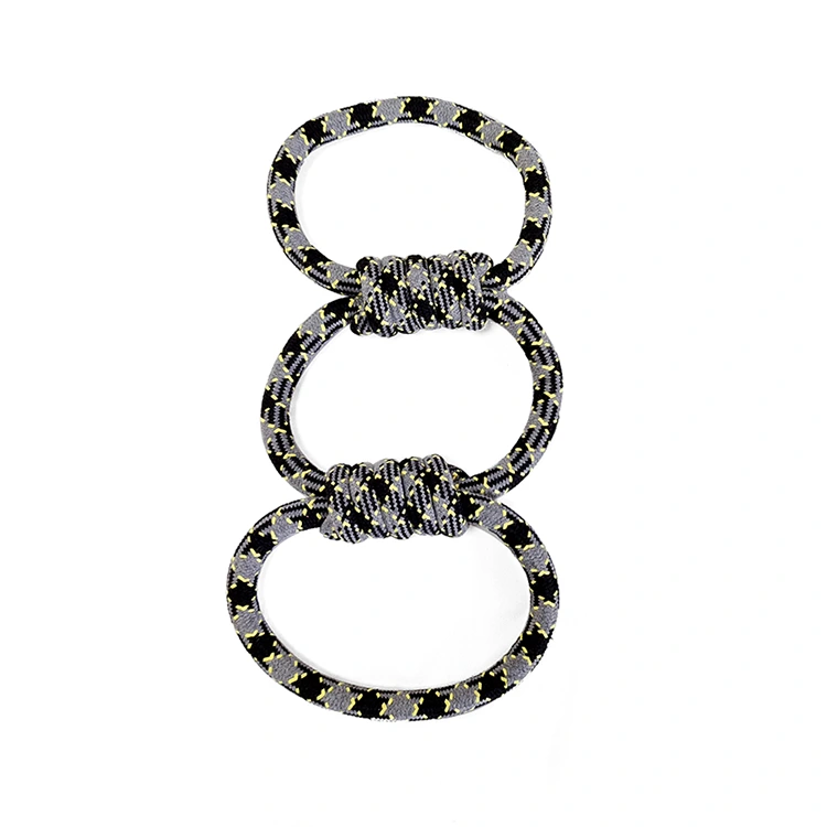 İç Mekan Dış Mekan 3 halkalı Pet Çiğneme Oyuncağımız, 3 halkalı bir tasarıma sahiptir ve 8,5 inç x 4 inç boyutlarındadır, bu da onu tüylü arkadaşlar veya sahiplerle çekişme maçları için mükemmel kılar. Bu özel tasarım tutkuyu besler ve evcil hayvanınızla aranızdaki bağı güçlendirir.